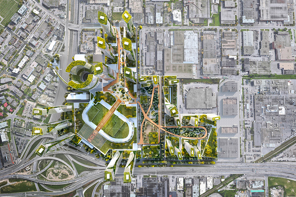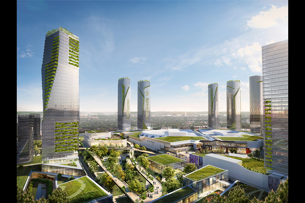 « Des jardins verticaux pareront les tours résidentielles de végétaux adaptés au climat québécois », affirme-t-on. L’espace dédié au verdissement - et aux installations communautaires - augmentera de 170% par rapport au premier plan : un boisé urbain, un sentier piétonnier de 3,8 km praticable toute l’année, ainsi qu’un parc central…