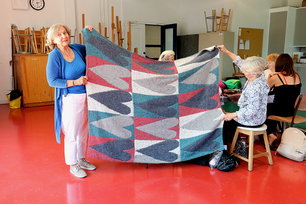 Une chose est claire cependant. « Au début, il y a des professeurs qui venaient donner différents cours (de tricot, de courtepointe et autres), et nous payions des frais pour ces ateliers, et ça nous coûtait tellement cher ! », évoque-t-elle. « On a fait cela pendant environ trois ans, et après je me suis dit: C’est fou de payer des spécialistes, quand nous en sommes déjà nous-mêmes; on savait ce que l’on faisait. Donc on a décidé que le groupe, de huit personnes à ce moment-là, n’aurait plus de frais à payer. »