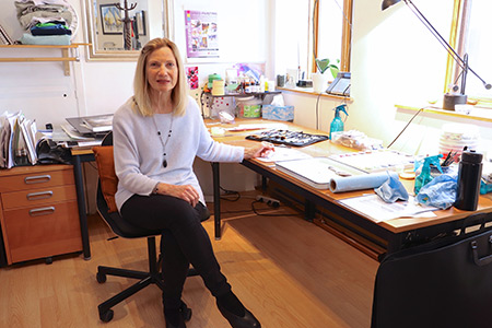 Andrée de Sève dans son atelier.Formée en graphisme à l’Université Concordia, mais agent de bord de carrière, Andrée de Sève a 71 ans et un air bien familier à Villemo. Alors qu’elle assure la vice-présidence de l’organisme culturel Arttram depuis 2016, cette aquarelliste de passion cultive aussi sa fibre artistique depuis plus de 35 ans. Retour en images sur quelques pans de sa vie à travers son art.