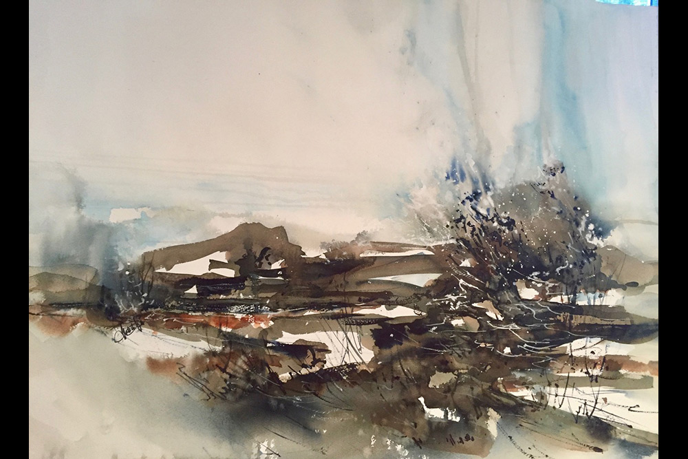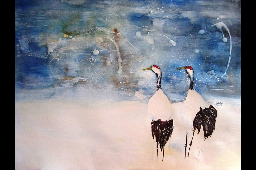 La mort. J’ai une amie qui est décédée il y a six ans et je ne sais pas comment cela m’est venue mais j’ai peint une grue perdue dans une tempête, avec son regard tourné vers le ciel. Cette représentation évoquait beaucoup son départ. Aujourd’hui, c’est sa soeur qui possède cette oeuvre. Mais après ce tableau, j’ai fait toute une série d’aquarelles avec des grues du Mandchourie, appelées aussi grues du Japon. Ce sont des oiseaux que je trouve extraordinaires. -