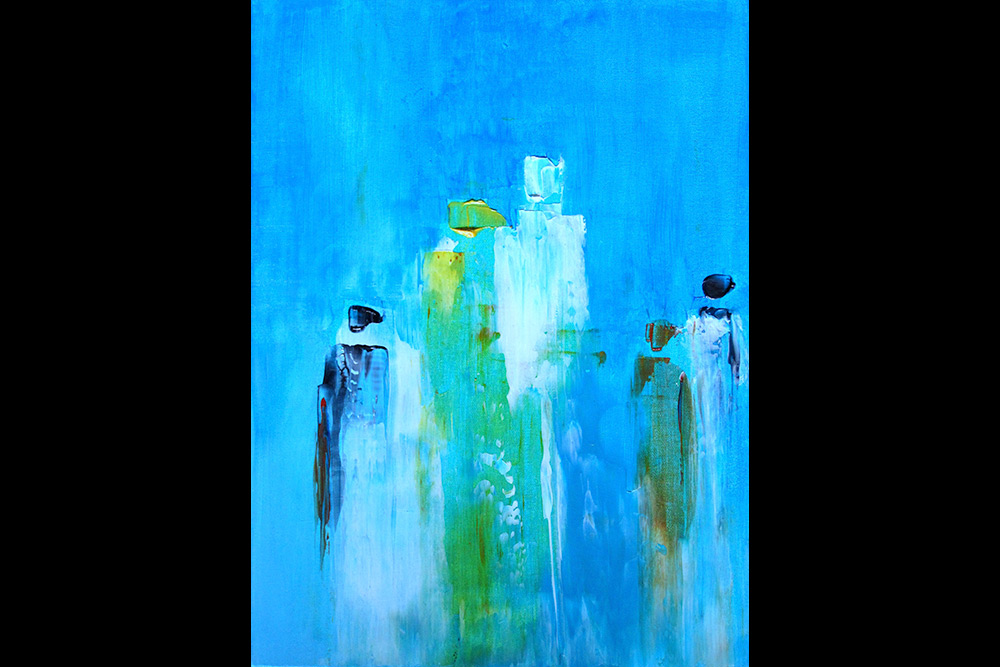 Née à Paris, mais d’origine normande, Laurence Hervieux est arrivée au pays en 1991 avec ses deux enfants en bas âge alors qu’elle suivait son mari pour le travail. Vers 2011, alors qu’elle gagnait sa vie comme architecte de système informatique, elle suivait également des ateliers de créations personnelles avec l’artiste en arts visuels Noëlla Dionne, à Québec. « C’est une personne incroyable, qui a mis des mots sur la démarche que j’avais à ce moment-là. Soit celle d’aller chercher mon souffle intérieur pour créer. Ces trois ans avec elle m’a vraiment lancée », indique-t-elle avec une force tranquille.