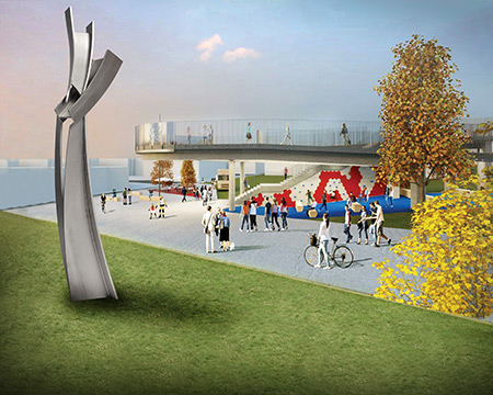 Élégante et élancée, entièrement composée d’acier inoxydable, « Éclosion » sera la sculpture la plus ambitieuse réalisée par M. Millette à ce jour, à plus de huit mètres de hauteur. Elle reprend avec une audace renouvelée le jeu délicat entre puissance et légèreté que favorise l’artiste.
