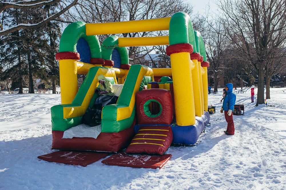 Le tournoi de hockey extérieur a malheureusement dû être annulé pour ne pas mettre les enfants à risques d’engelures. Par contre, l’atelier de sculptures sur glace, la démonstration de curling et les jeux gonflables ont été très appréciés des participants… et le chocolat chaud aussi ! De braves animateurs ont également « réchauffé » l’atmosphère des deux sites d’activités.
