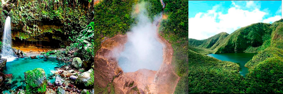 Le pays n’est pas très grand et en quelques jours on en aura parcouru toutes les routes, celles qui longent les zones littorales et traversent les villages côtiers, et celles qui sillonnent la nature profonde et pénétrante. S’il y a peu de plages de sable blond pour s’y faire dorer, la Dominique offre en revanche offre une expérience presque mystique autour de ses forêts luxuriantes. Le cadre magique de ses spectaculaires chutes (Trafalgar Falls, Victoria Falls, Emerald Pool); les sites naturels d’eau douce d’une pureté sublime où l’on se baigne sous les chauds rayons de soleil filtrés par la canopée (Gorge Titou) ou les balades en barque sur Indian River au cœur de la jungle humide sont autant de raisons pour communier avec une nature puissante et encore peu exploitée.